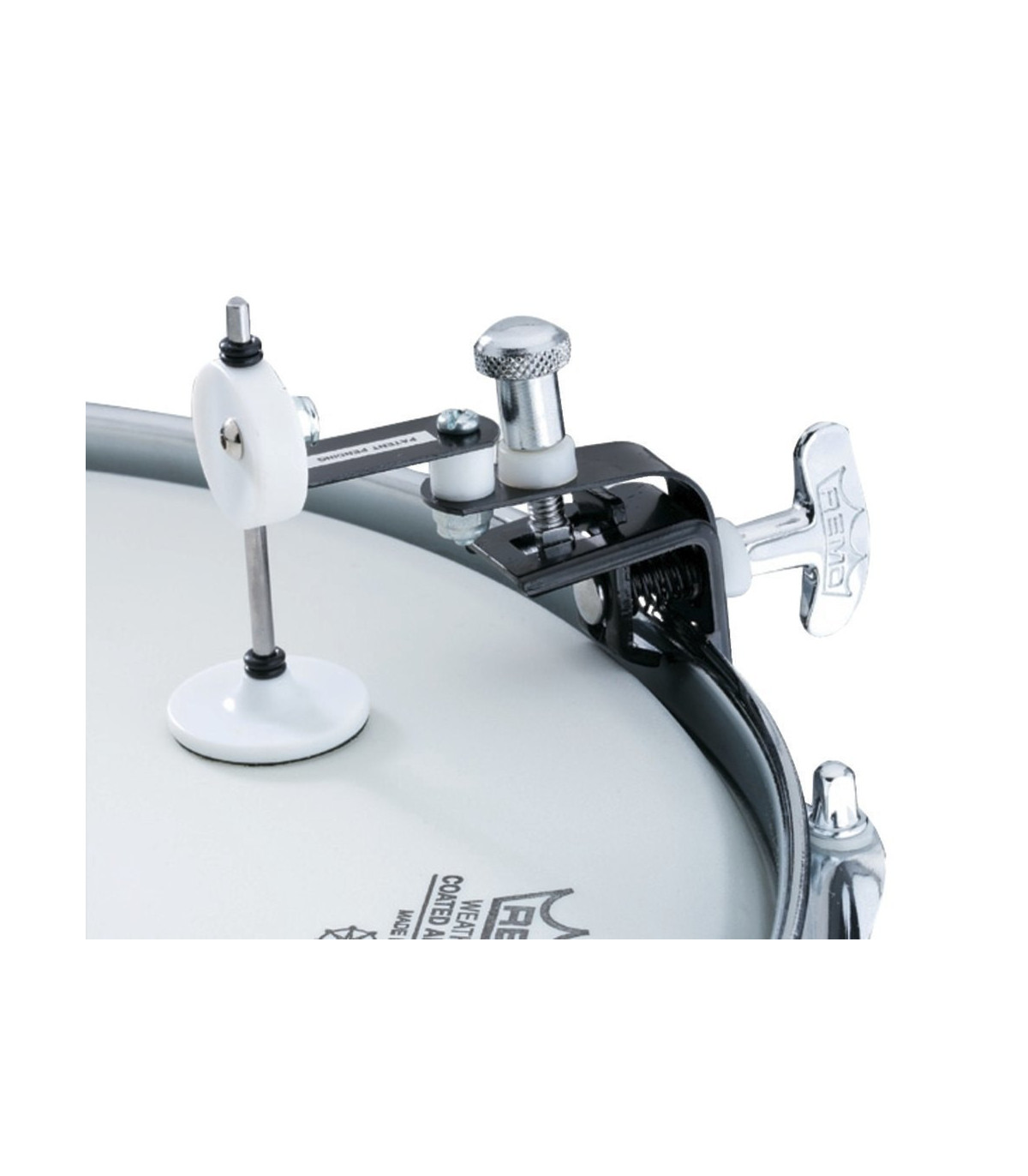 An external sordina designed by Dave Weckl. It consists of a simple mechanism that is slightly supported on the head. The moment he's hit, the same vibration head makes it rise allowing a free vibration head. Truly innovative.