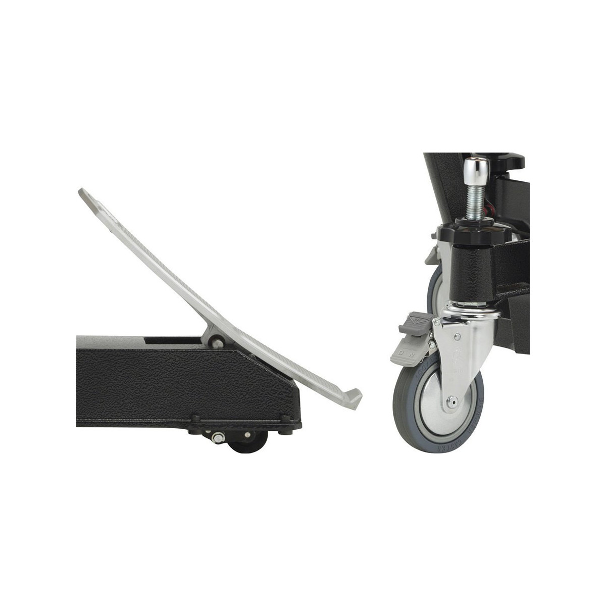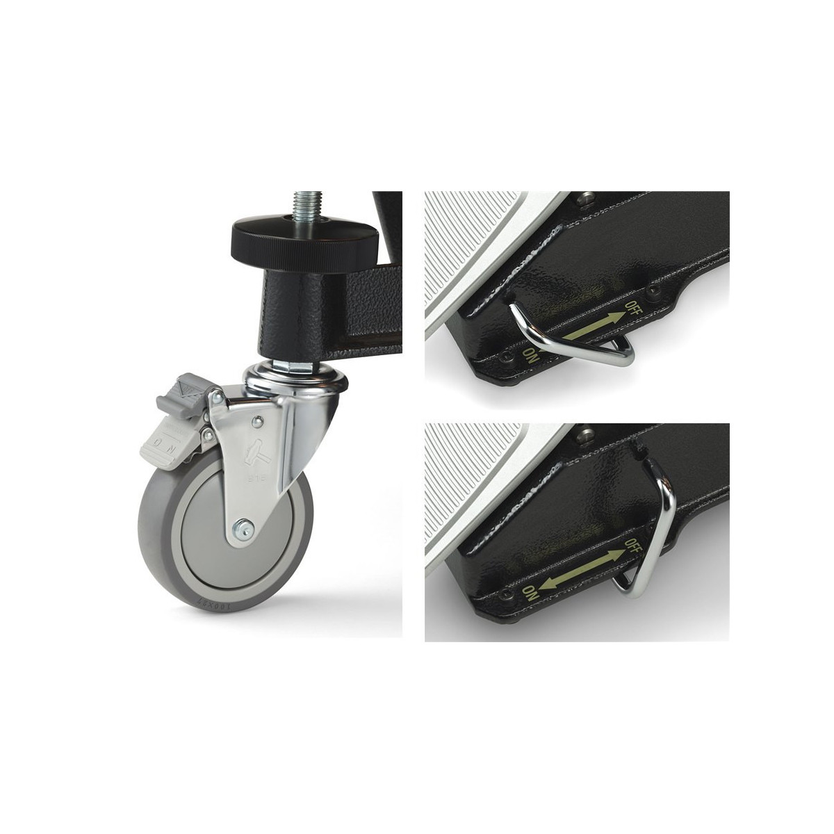 - The main wheels include a locking mechanism that contributes to fast and secure configuration. In addition to the locking mechanism the main wheel, an auxiliary brake has been added the pedal wheel. Timber can activate the auxiliary brake to securely block the wheel and avoid the movement of the instrument.