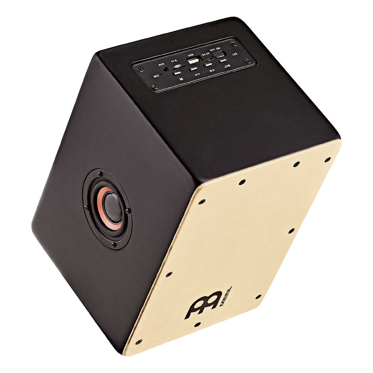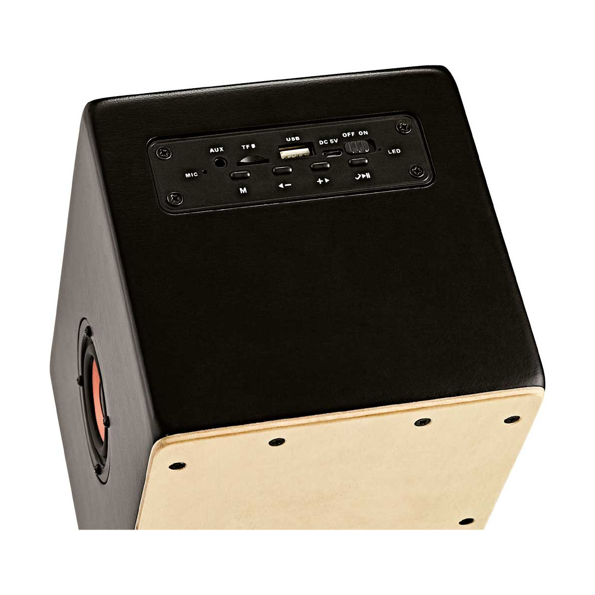 Con el aspecto de un cajón Meinl, este divertido altavoz te permitirá llevar tu música allá donde vayas y compartirla con los tuyos. Dentro del cuerpo del cajón se esconde un altavoz de 5 vatios que puedes conectar a tu smartphone de manera inalámbrica o mediante su puertos USB, auxiliar y ranura para tarjeta TF.
